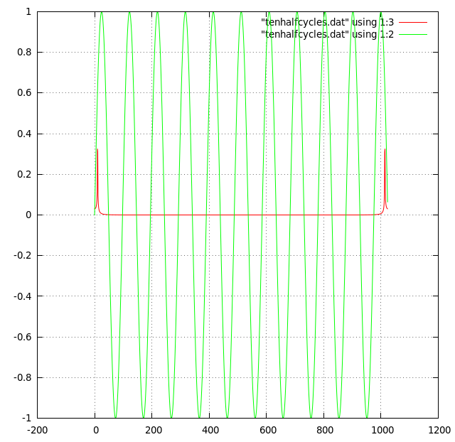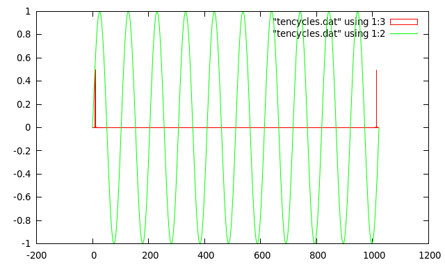 First of all here what windowing does to the ideal 10 cycle sine wave used in the previous section: