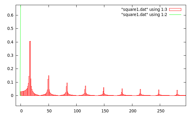 Here is the transform obtained by windowing the square wave that didn't quite exactly fit into 2N samples: